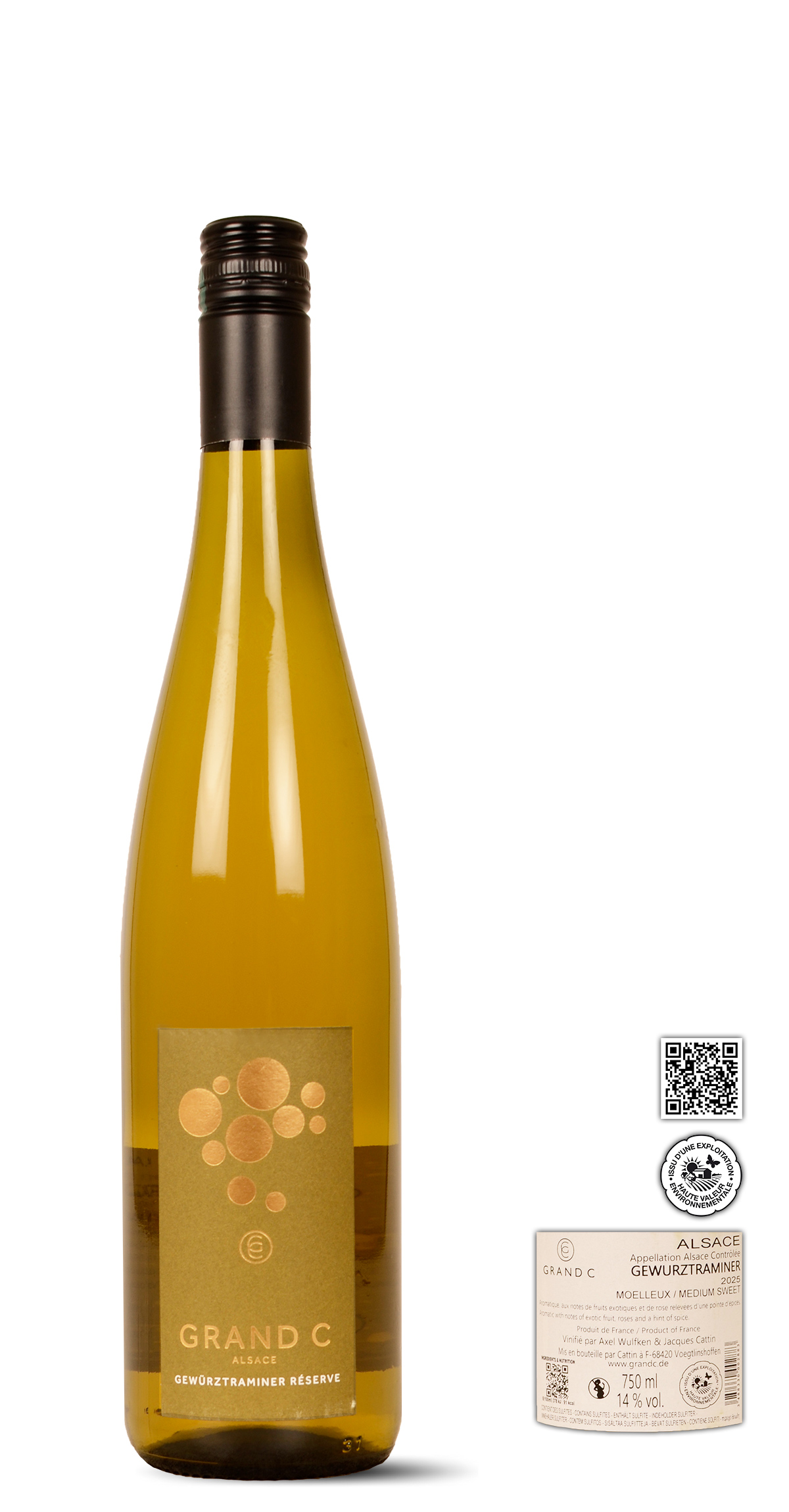 100% Gewürztraminer. Handgeplukte druiven. Temperatuur gecontroleerde fermentatie op inox waarna korte rijping en botteling.